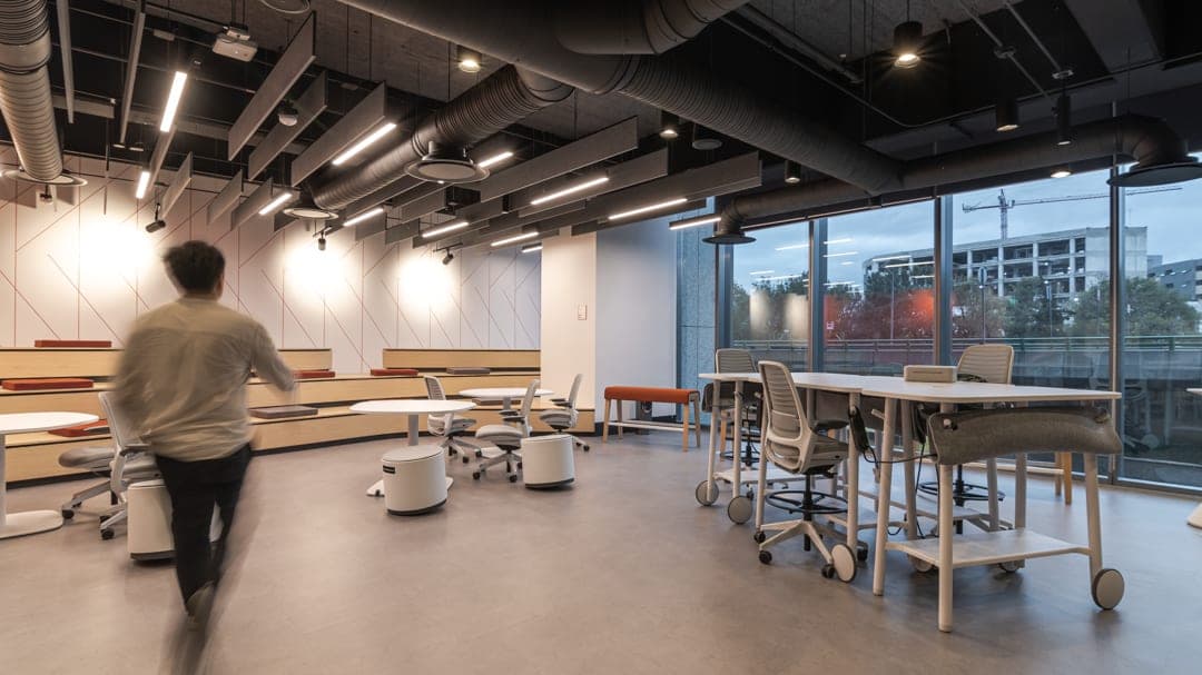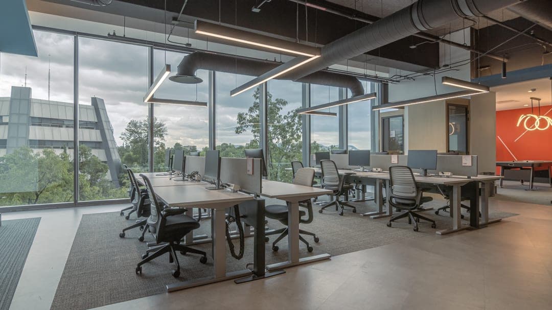 Oficinas de alta tecnología donde la iluminación refuerza la cultura de innovación. Sistema de automatización Lutron con integración a sensores de presencia y luz natural.